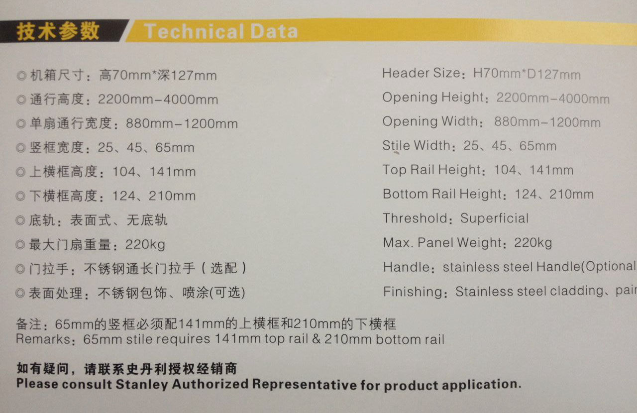 深圳史丹利平衡门技术参数